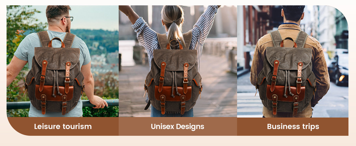 From work to college, cycling to travel, or even a casual day out, this versatile backpack transitions seamlessly. It's a backpack that changes with your needs, a canvas backpack for men who value adaptability, and a leather backpack for women who desire flexibility.